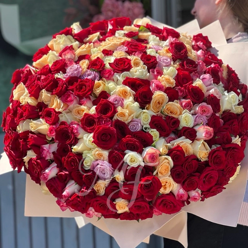 Роскошь в одном букете из 301 местной розы высотой 60 см